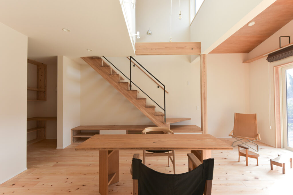 メインのリビングやダイニングや、ワークスペース、階段など。