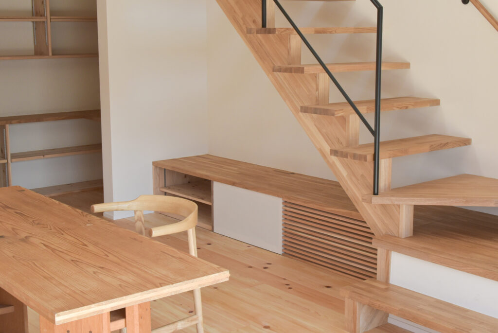 Senboku New Town, Hinoo. This is a new housing construction project in the Mikita district, which has many urbanization control zones, by converting a site that was previously used as a mandarin orange field into residential land. The performance, design, and functionality of this theme. Earthquake resistance grade 3, which is the basic performance of a building, as well as insulation and airtightness. Also Class 1 ventilation and solar power generation systems. In addition, there is a living dining room with a spacious floor plan, an open washroom and toilet, a Miele dishwasher, and Kenta-kun, which aims to save time on housework. While parts of the building are made of Kishu wood, the walls and ceiling are finished with egg pulp. This is an eco-house that pursues a balance of performance, design, and functionality.
