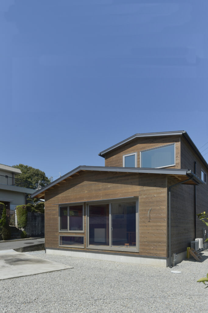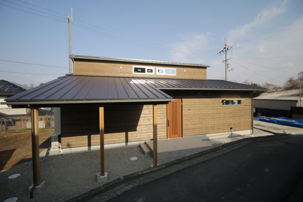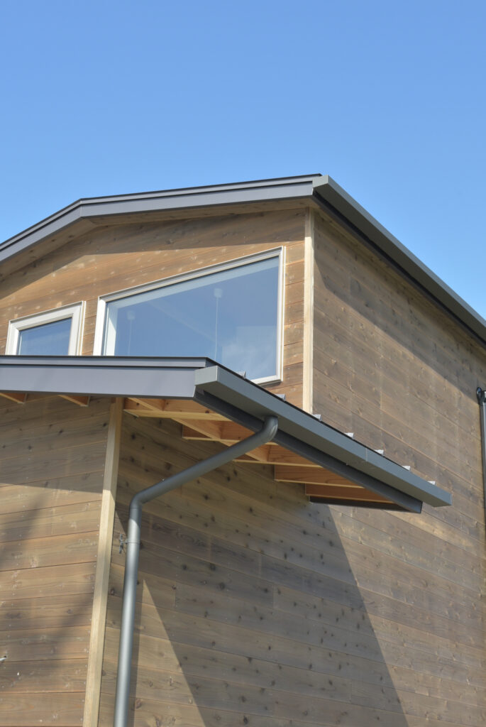 窯業系サイディングから、板金サイディング、また板金で葺いたり、そして今回の板張り。
