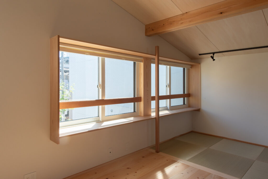 キッチンは立って、ダイニングは椅子座、ソファから畳スペース周りは、座の暮らしへ。普段からゴロゴロしていただける居場所。南に面する腰窓から、冬季には日差しが燦燦と降り注ぎ、最高のくつろぎ空間となります。