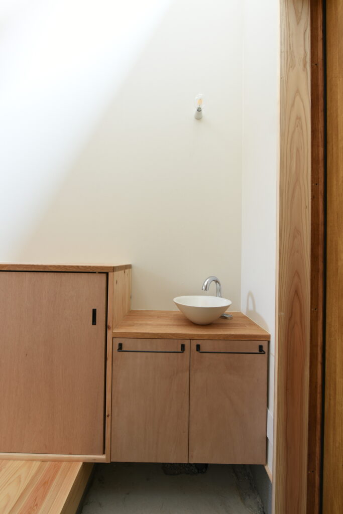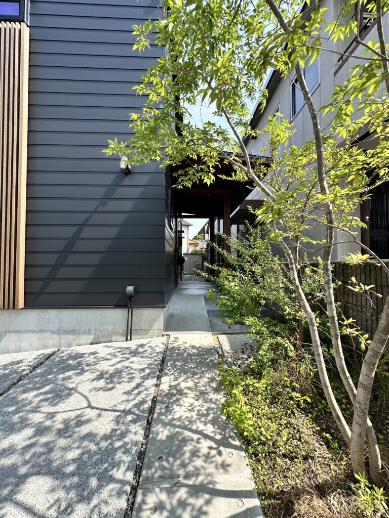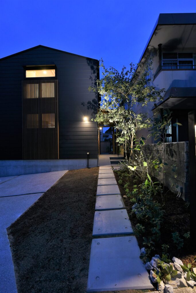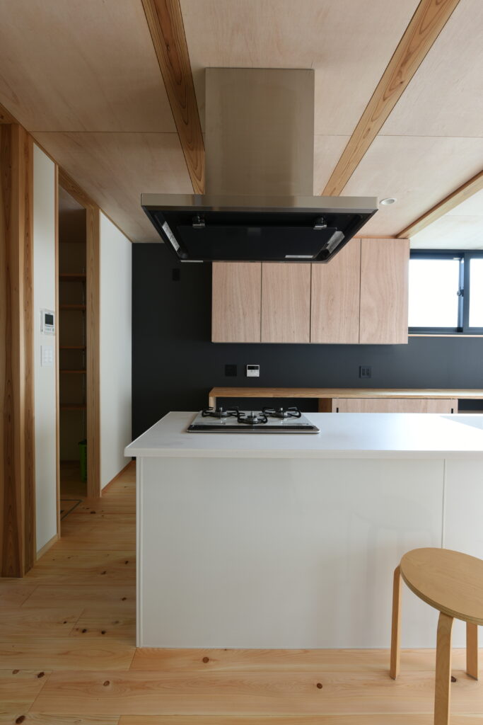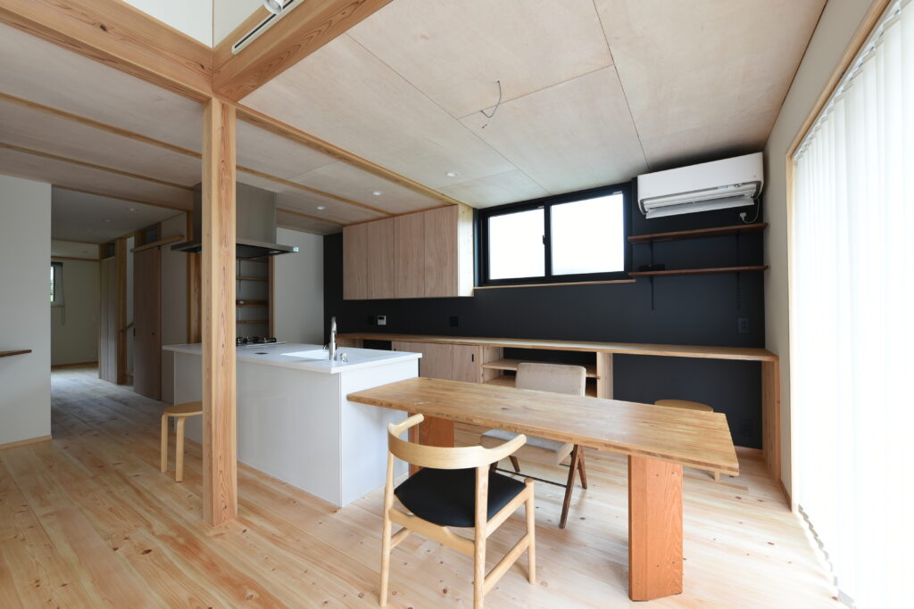 Mikita district at the foot of Mitami Shrine in Hino, Minami Ward, Sakai City. The familiar environment that I have lived in. Our clients are two families: a mother and a daughter. On the first floor, there is a main living room, dining room, kitchen, water area, and mother’s room. On the second floor, there is the daughter’s room, toilet, plumbing, and second living room. The upper and lower floors are loosely connected by an atrium, and each floor has its own lifestyle. The mother could no longer bear the cold in winter and had previously been able to rent an apartment only for the winter months. Whether it’s winter or summer, we offer energy-saving and comfortable living options. This is a future home that has general barrier-free access and thermal barrier-free access.