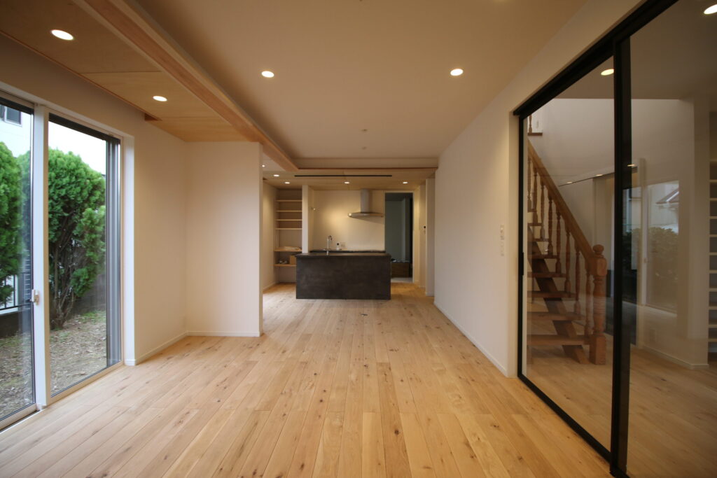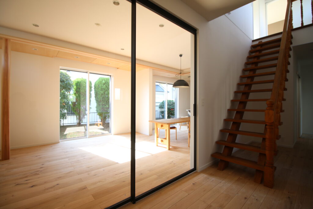 二間続きの和室は、大きなLDKに、玄関や洗面所、あらゆるところに収納を設置し、スカッと暮らせる家を目指したリノベーション住宅。