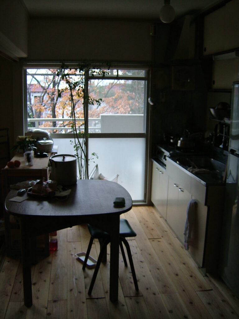 新婚、いまから10年前、僕はまだ和歌山にてハウスメーカー勤務。新居に選んだのは、大阪府住宅供給公社の賃貸住宅。週末になると泉北に帰ってくるという生活。掃き出しの窓からは一面グリーン。床には自分たちでDIYした、杉の無垢フローリングを敷きつめた。キッチンや、洗面、浴室も、昔から使われていたものだが、デザインはシンプルで、レトロ感のある雰囲気はかなり気に入った。床50㎡とコンパクトではあるが、間仕切りを取っ払い、自分たちでカスタマイズした住まいは、思い入れの強い住まい。