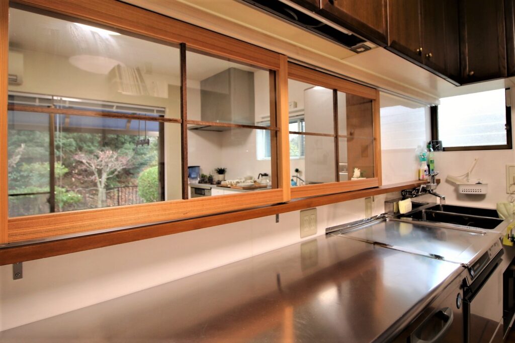 ただ、このスペースはすでにリフォームされており、現在のキッチンとプラン的に真逆にあった。まったく配管設備のないスペースに新たに厨房機器を設置するとなると、予算的にも厳しくまた、動線を考えても、できるだけ現在のキッチンの並行して、作業が進められたらと提案。そして、持ち上がった案が、現在のキッチンスペースを工房に、ダイニングスペースに新しくキッチンを設けるというもの。このダイニングスペースは、裏にある緑道に面しており、将来料理教室や、シェアキッチンをするにしても開放感のあるスペースになる。また、設備配管に関しても現状をうまく利用しながら工事を進めることができる。