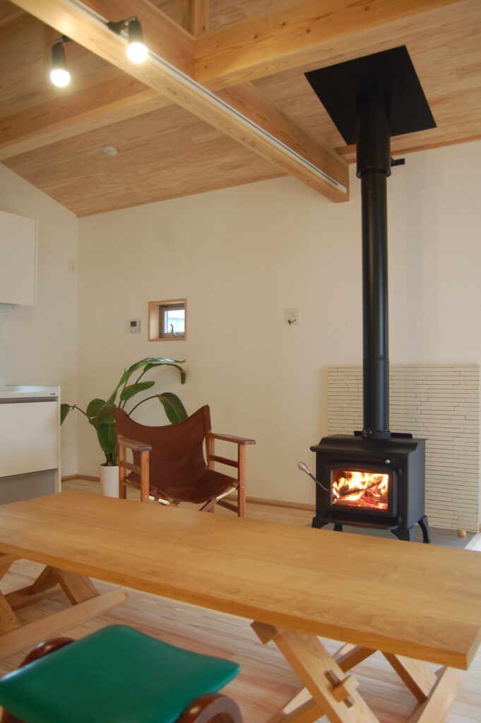 もう、滑り込みセーフなのかアウトだったのかよくわからないまま、最終章を迎えた。アメリカ西海岸でのストライキにより、薪ストーブの搬入が遅れるというアクシデントに見舞われながらも、なんとか取付完了。ウイスキーでも片手に、薪をくべながら、まどろむような時間。